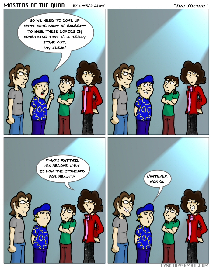 It's called "Masters of the Quad," and if all goes well, I will be giving you a new one every tuesday. If that's not exciting enough, I present to you the very first episode, "The First." Without further adeu...
