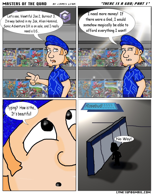 With the Christmas season over, and Winter-een-mas beginning, my credits are running low. The fourth quarter had so many releases, but I have little time for those. I'm still working on getting some older titles, many of which still haven't been lowered from fifty bucks yet. Why can't someone be looking down on me, taking care of me, guiding me, and giving me money? Is there a God? If so, does he visit gamefaqs.com?